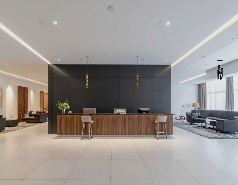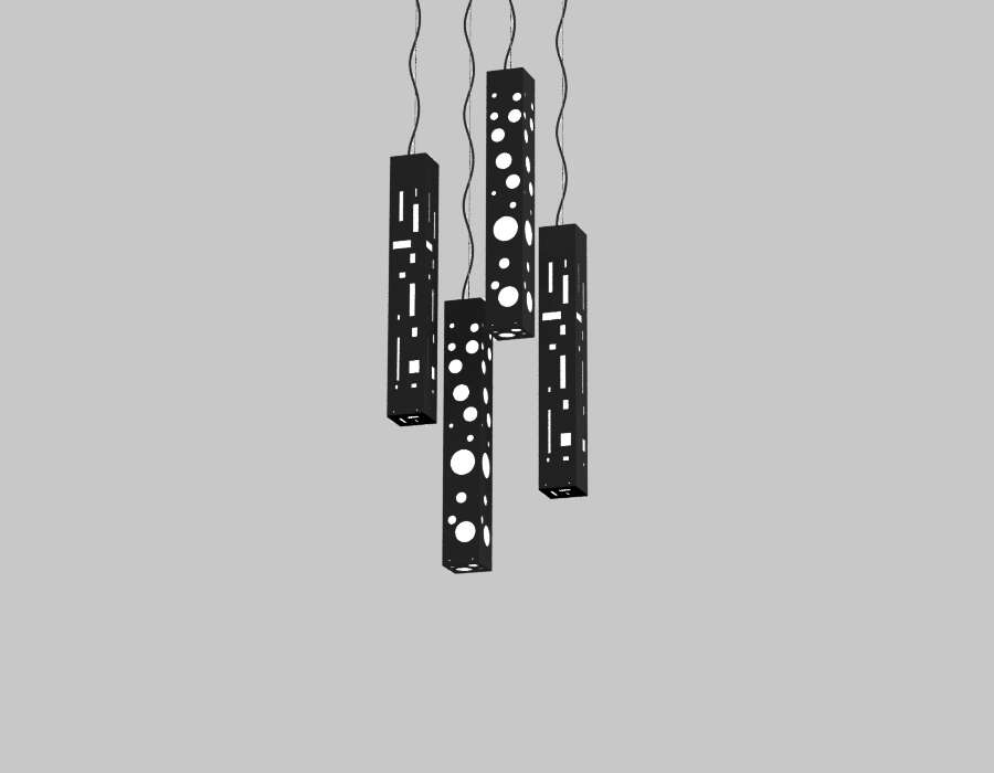 This is a square pendant. EMBASSY is created mainly as decorative addition to interior spaces such as lobbies, atria, lounges, unique rooms, mixed-use areas, and halls.